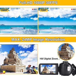 Video Camera Camcorder Full HD 1080P 30FPS 24.0 MP IR Night Vision Vlogging Camera Recorder 3.0 Inch IPS Screen 16X Zoom Camcorders Camera Remote Control with 2 Batteries